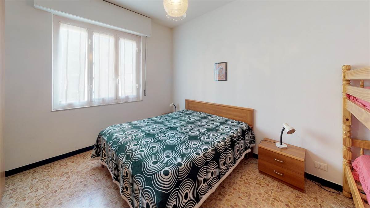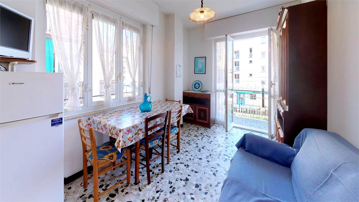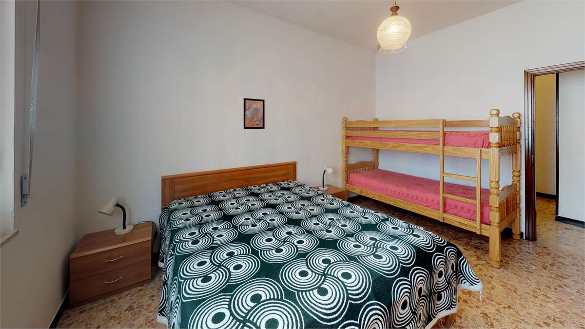 ingresso - soggiorno con divano letto - tv - angolo cottura - camera con letto matrimoniale e letto a castello - bagno con lavatrice - balcone.