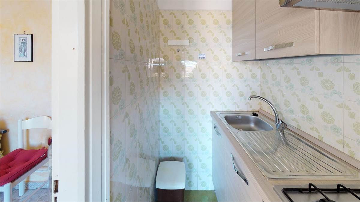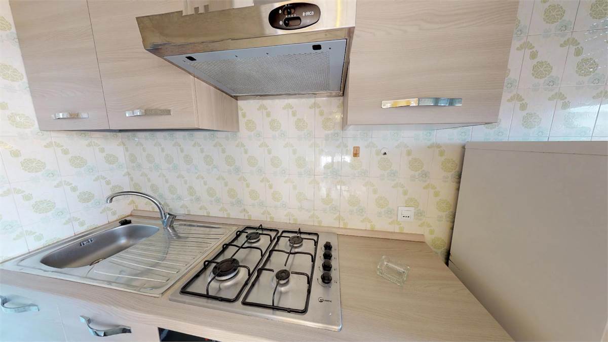 ingresso - soggiorno con divano letto matrimoniale - tv - angolo cottura - camera matrimoniale più un letto singolo - bagno - 2 ampi balconi con lavatrice - ripostiglio - 5° piano con ascensore.