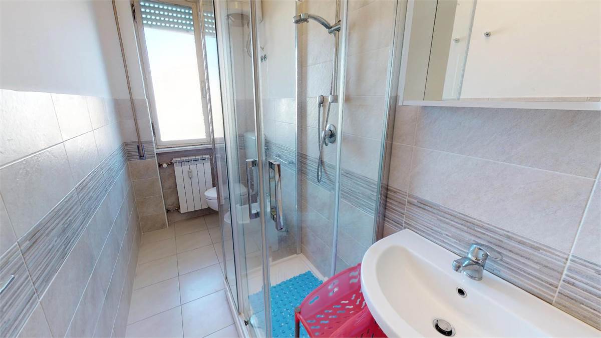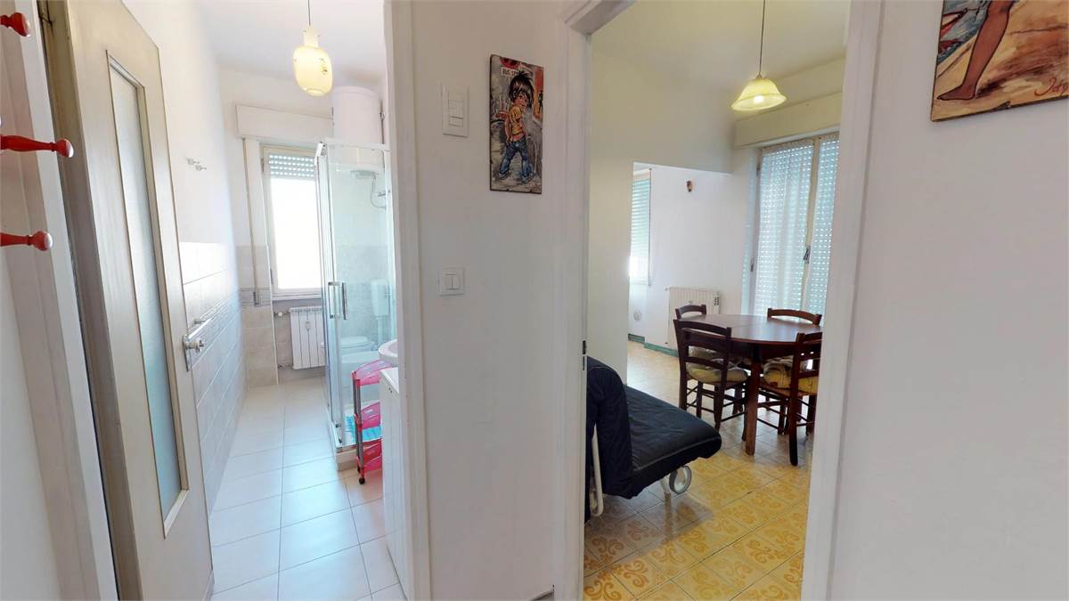 Ingresso - tinello con divano letto - bagno - camera con letto matrimoniale più letto singolo - 2 balconi - tv - lavatrice - 2 piano con ascensore 50 mt dal mare