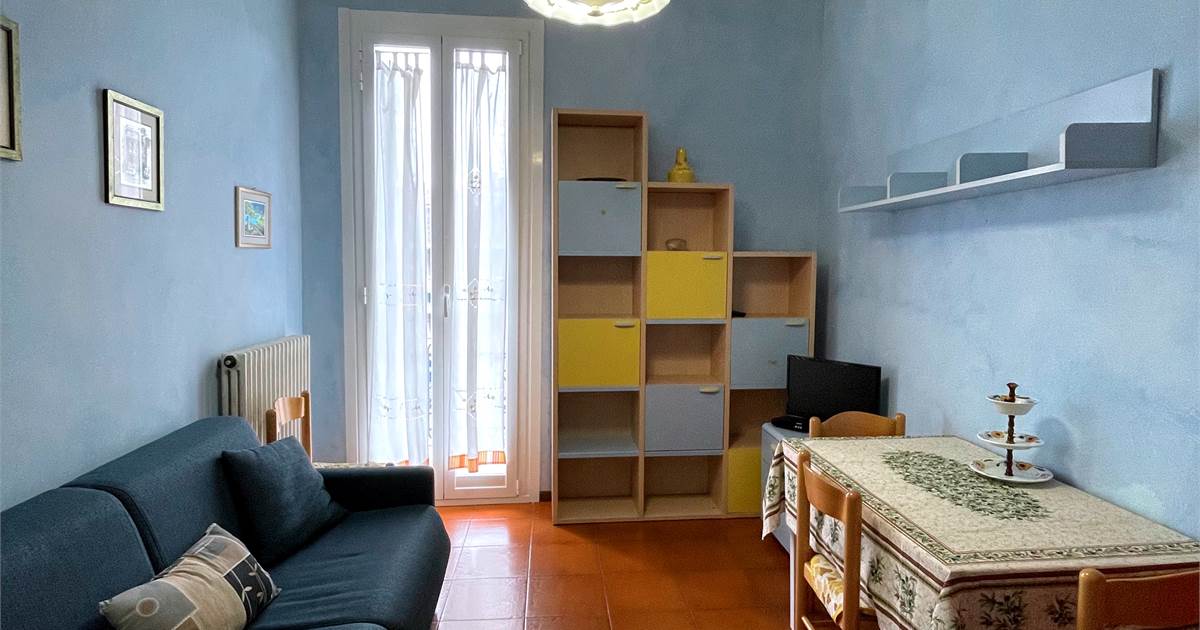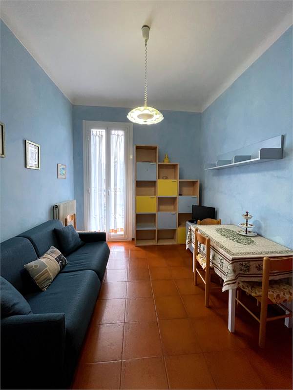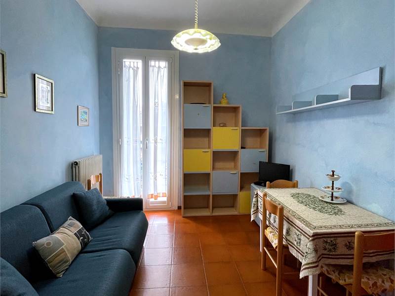 Ingresso in soggiorno con angolo cottura e con divano letto - camera con letto matrimoniale - bagno - balcone - tv - lavatrice - 1° piano senza ascensore .