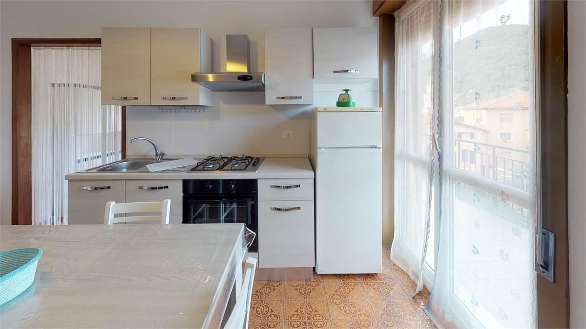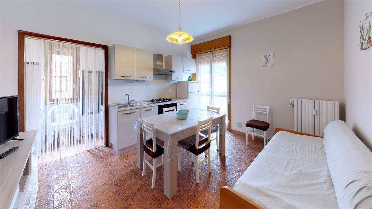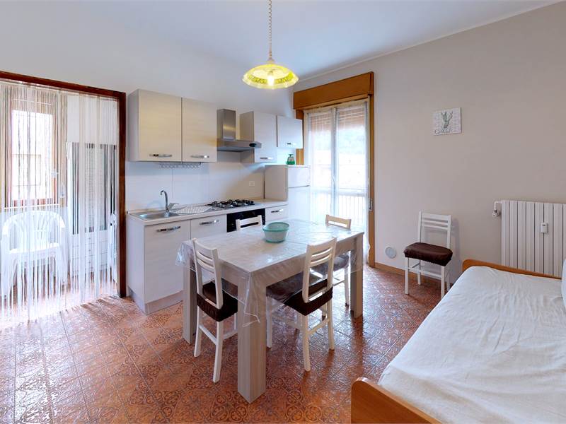 Ingresso - ampia zona giorno con cucina - divano letto a ponte - camera matrimoniale più letto singolo - bagno con box doccia - ripostiglio con lavatrice 1 balcone - piano 4° con ascensore - senza barriere architettoniche !!