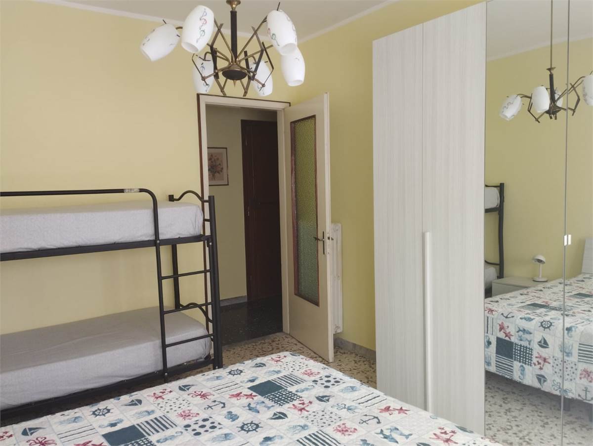 Ingresso - cucina abitabile con tv - bagno con lavatrice - camera da letto con letto matrimoniale e un letto a castello - ripostiglio - balcone vista mare - 3° piano con ascensore.