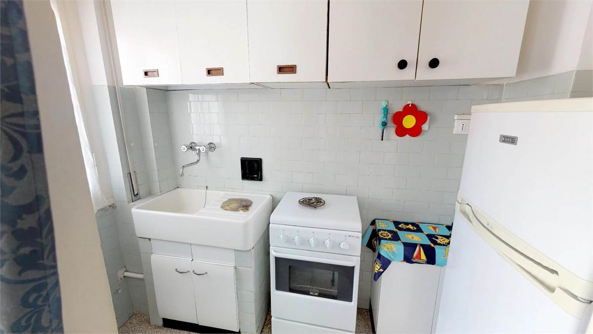 Appartamento ubicato sulla passeggiata - fronte mare - 3° piano con ascensore composto da : Ingresso - camera matrimoniale - sala con divano letto e poltrona letto - soggiorno con letto singolo - tv - angolo cottura - bagno con lavatrice e box doccia - 2 balconi