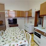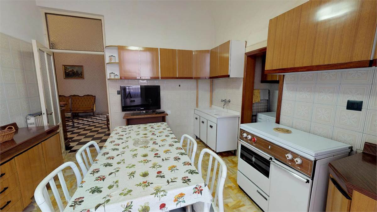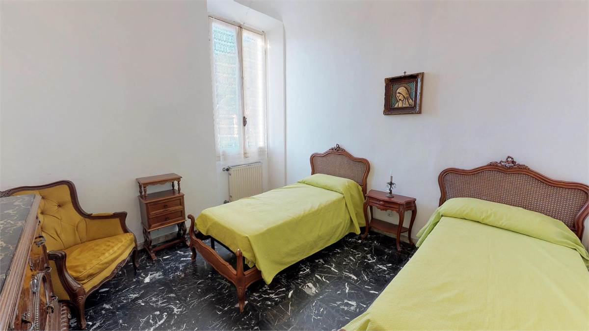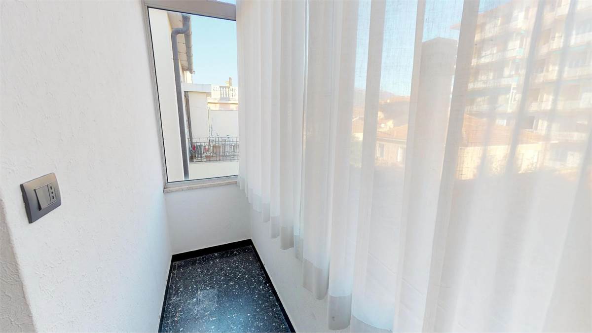 ampio ingresso con divano letto a ponte ( 2 singoli ) - 1 camera matrimoniale piu' un singolo - 1 camera con 2 singoli - cucina abitabile con lavatrice - bagno- 1 balcone verandato - 1 balcone vista mare.
