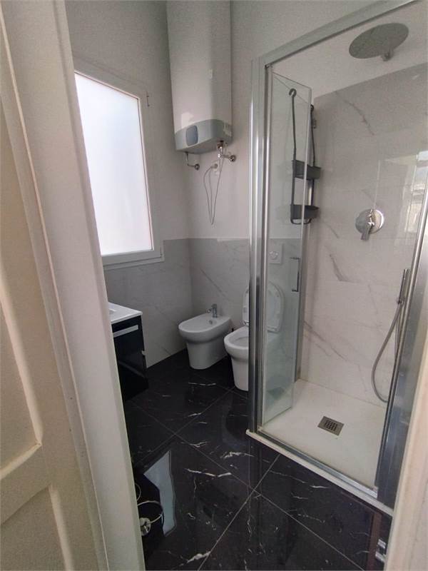ampio ingresso con divano letto a ponte ( 2 singoli ) - 1 camera matrimoniale piu' un singolo - 1 camera con 2 singoli - cucina abitabile con lavatrice - bagno- 1 balcone verandato - 1 balcone vista mare.