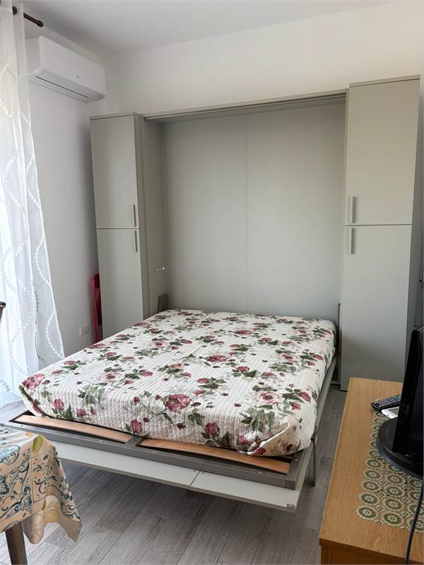 L' immobile è composto da : ingresso - sala con letto matrimoniale e cucina con piano cottura ad induzione - cameretta con divano letto - bagno con box doccia - balcone . No lavatrice