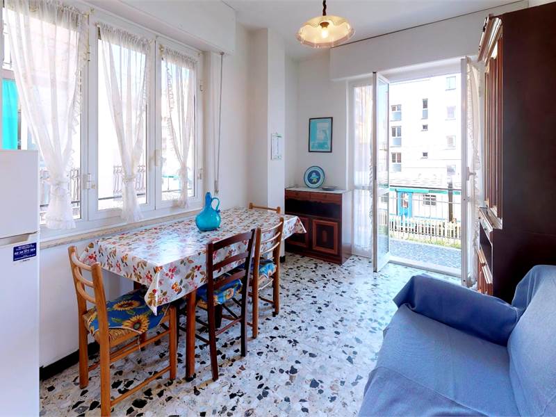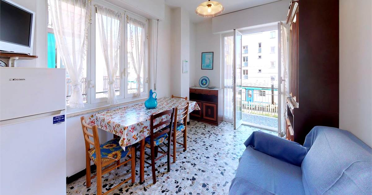 ingresso - soggiorno con divano letto - tv - angolo cottura - camera con letto matrimoniale e letto a castello - bagno con lavatrice - balcone.