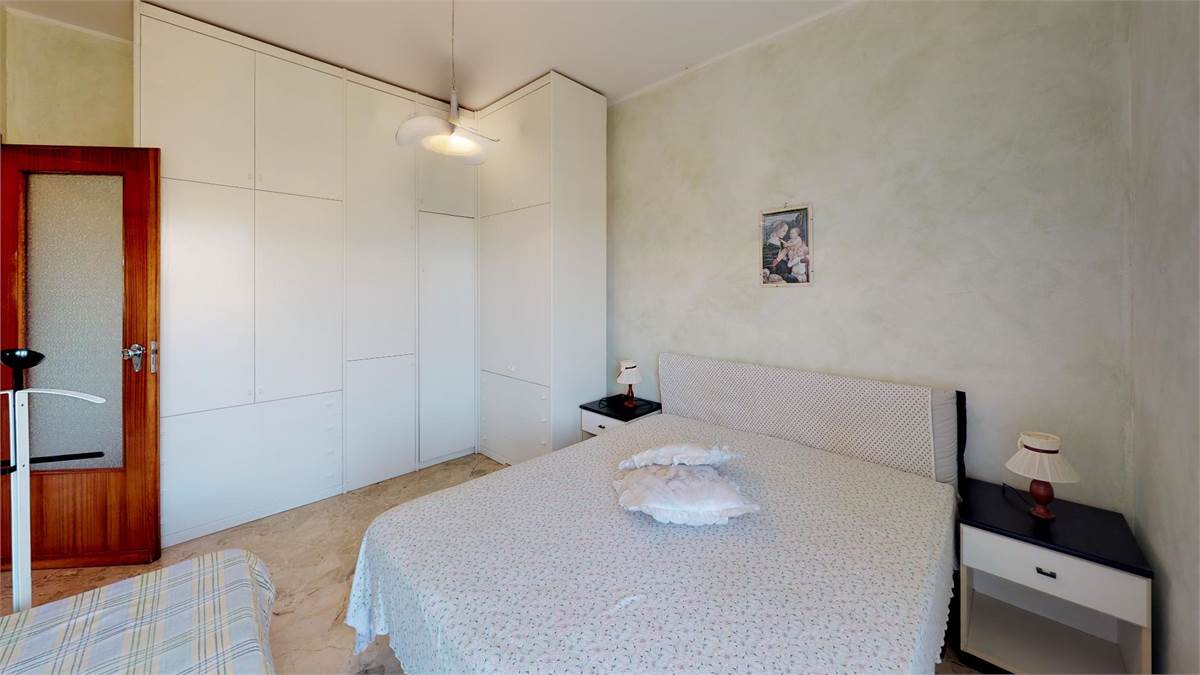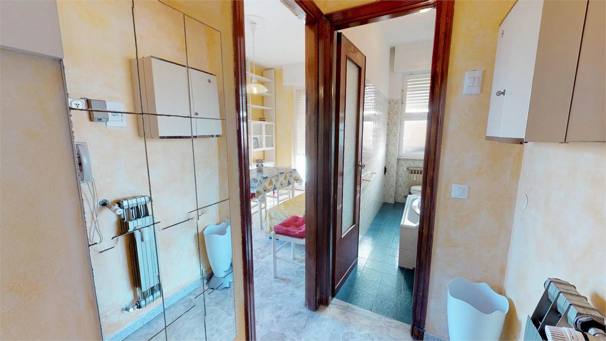 ingresso - soggiorno con divano letto matrimoniale - tv - angolo cottura - camera matrimoniale più un letto singolo - bagno - 2 ampi balconi con lavatrice - ripostiglio - 5° piano con ascensore.