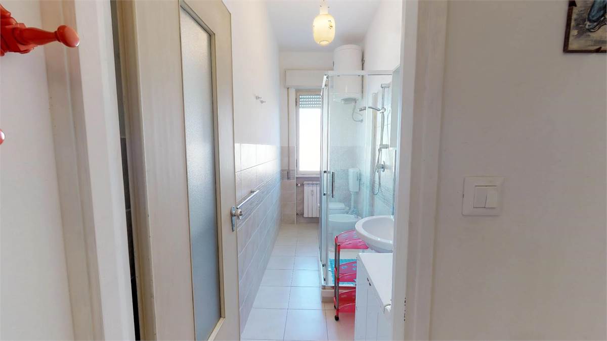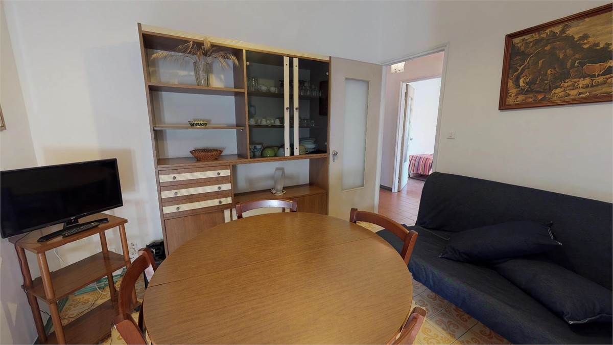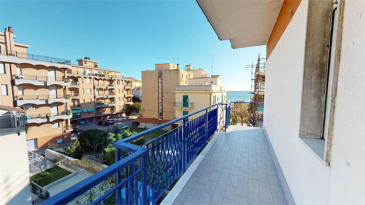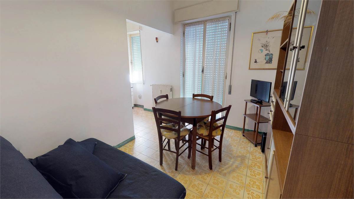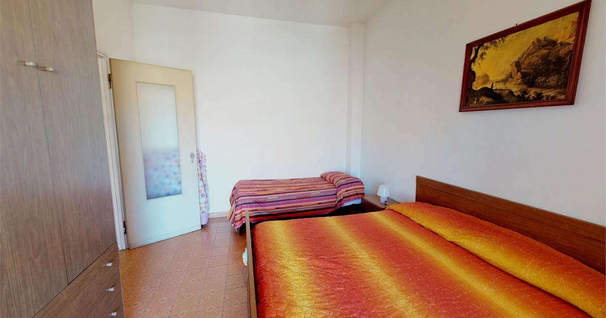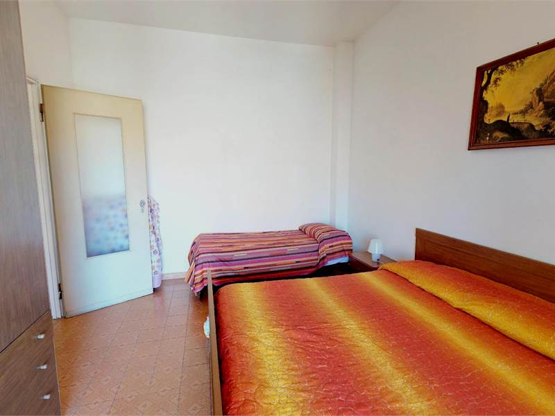 Ingresso - tinello con divano letto - bagno - camera con letto matrimoniale più letto singolo - 2 balconi - tv - lavatrice - 2 piano con ascensore 50 mt dal mare