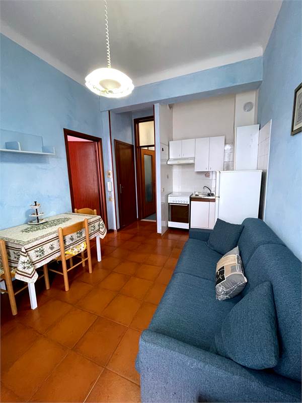Ingresso in soggiorno con angolo cottura e con divano letto - camera con letto matrimoniale - bagno - balcone - tv - lavatrice - 1° piano senza ascensore .
