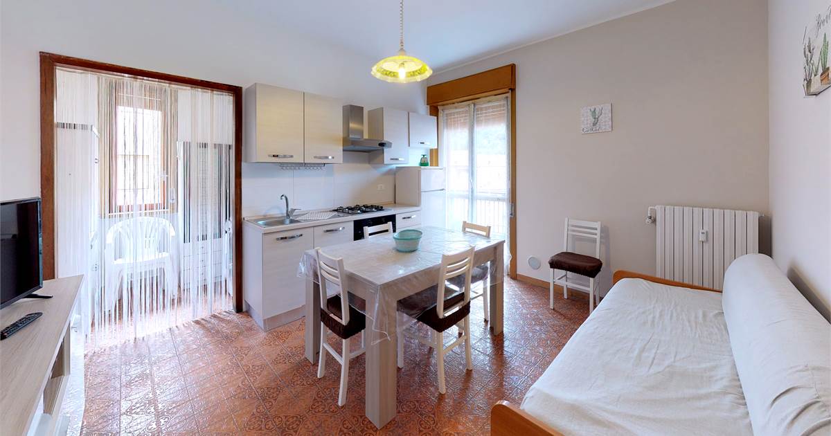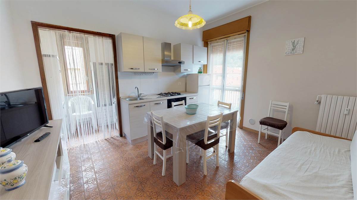 Ingresso - ampia zona giorno con cucina - divano letto a ponte - camera matrimoniale più letto singolo - bagno con box doccia - ripostiglio con lavatrice 1 balcone - piano 4° con ascensore - senza barriere architettoniche !!