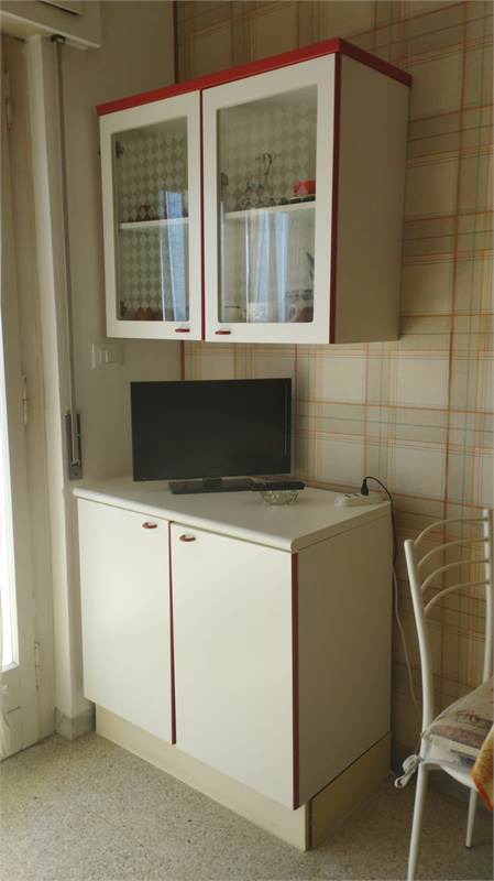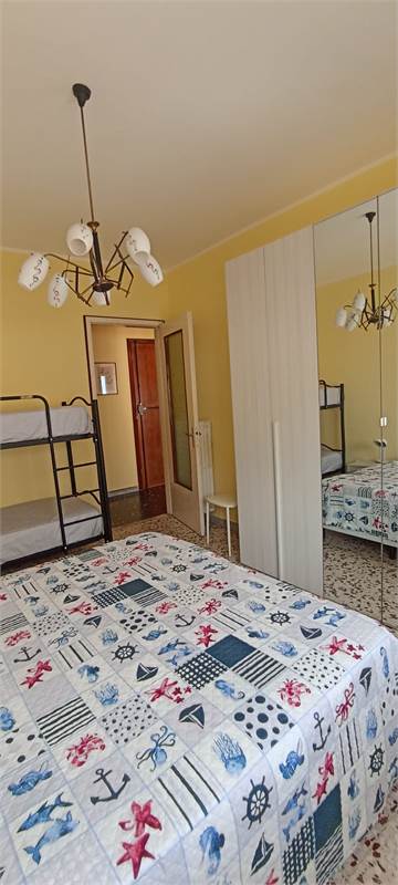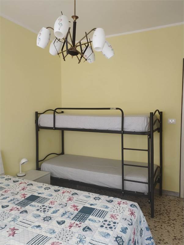 Ingresso - cucina abitabile con tv - bagno con lavatrice - camera da letto con letto matrimoniale e un letto a castello - ripostiglio - balcone vista mare - 3° piano con ascensore.