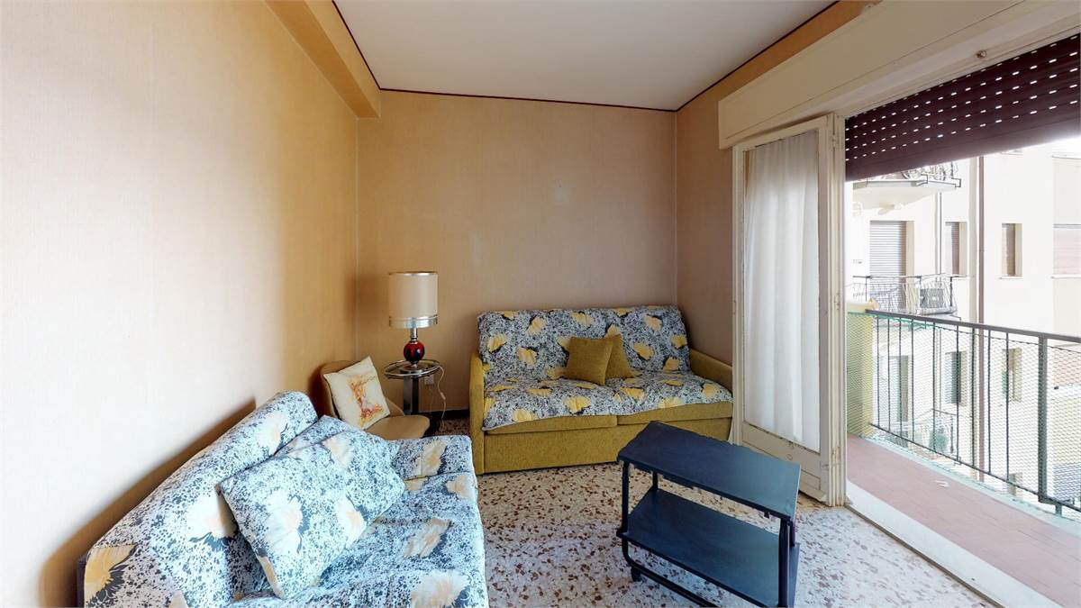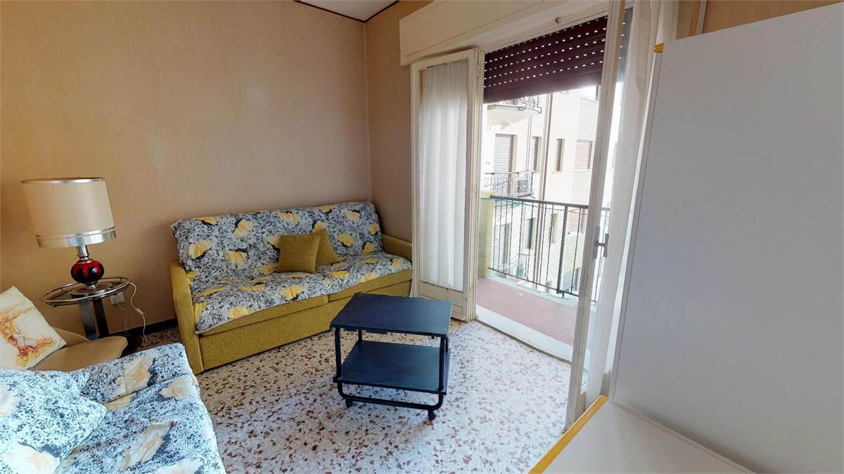 Appartamento ubicato sulla passeggiata - fronte mare - 3° piano con ascensore composto da : Ingresso - camera matrimoniale - sala con divano letto e poltrona letto - soggiorno con letto singolo - tv - angolo cottura - bagno con lavatrice e box doccia - 2 balconi