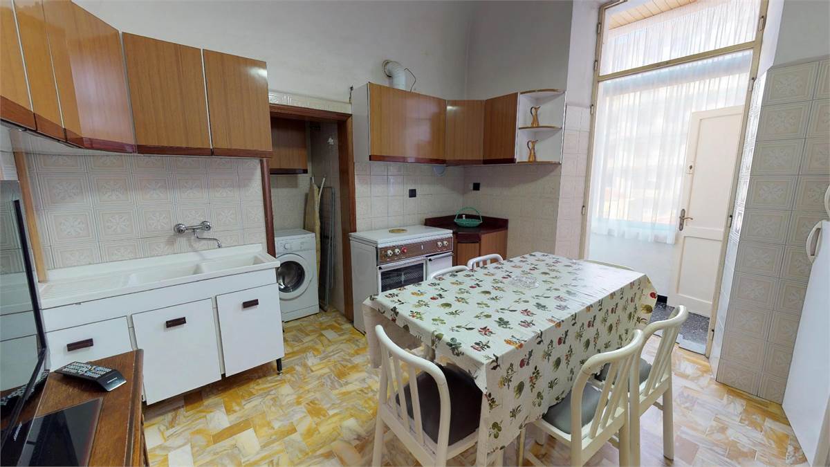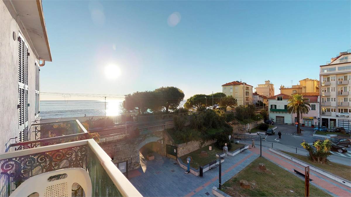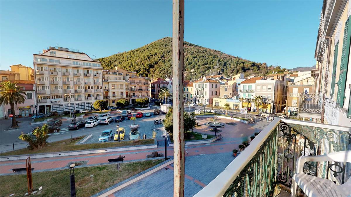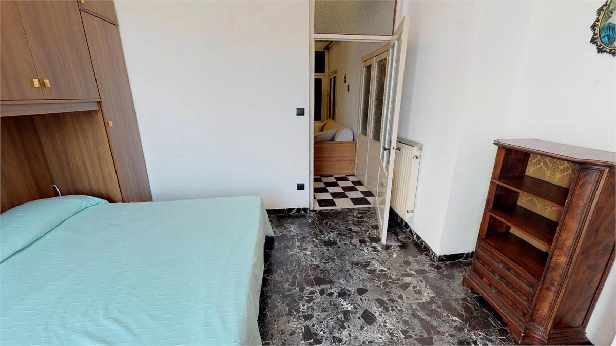 ampio ingresso con divano letto a ponte ( 2 singoli ) - 1 camera matrimoniale piu' un singolo - 1 camera con 2 singoli - cucina abitabile con lavatrice - bagno- 1 balcone verandato - 1 balcone vista mare.