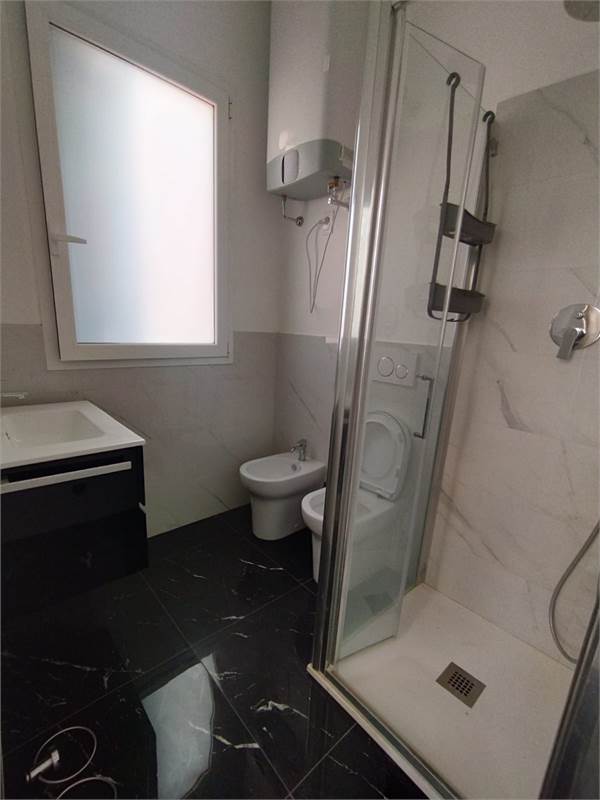 ampio ingresso con divano letto a ponte ( 2 singoli ) - 1 camera matrimoniale piu' un singolo - 1 camera con 2 singoli - cucina abitabile con lavatrice - bagno- 1 balcone verandato - 1 balcone vista mare.
